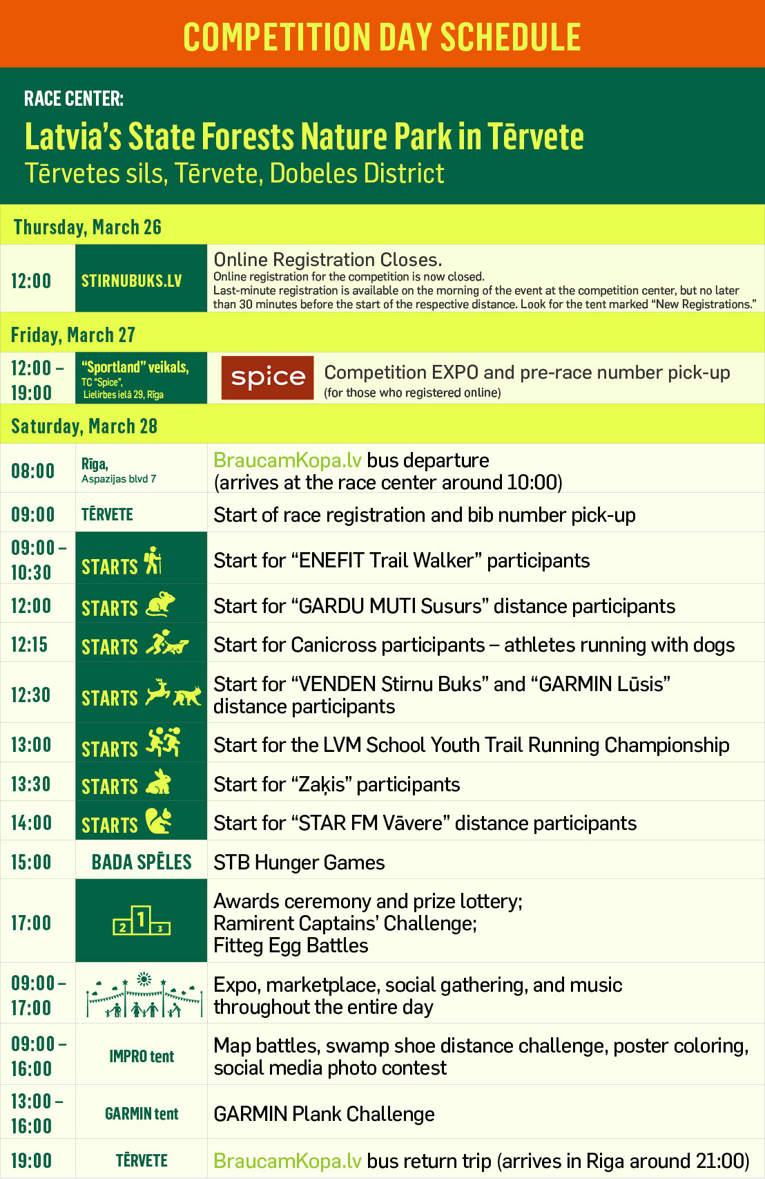 Last-minute registration will also be available on race day at the Race Centre before the start, but no later than 30 minutes before the start of the respective distance (tent “New Registrations”).